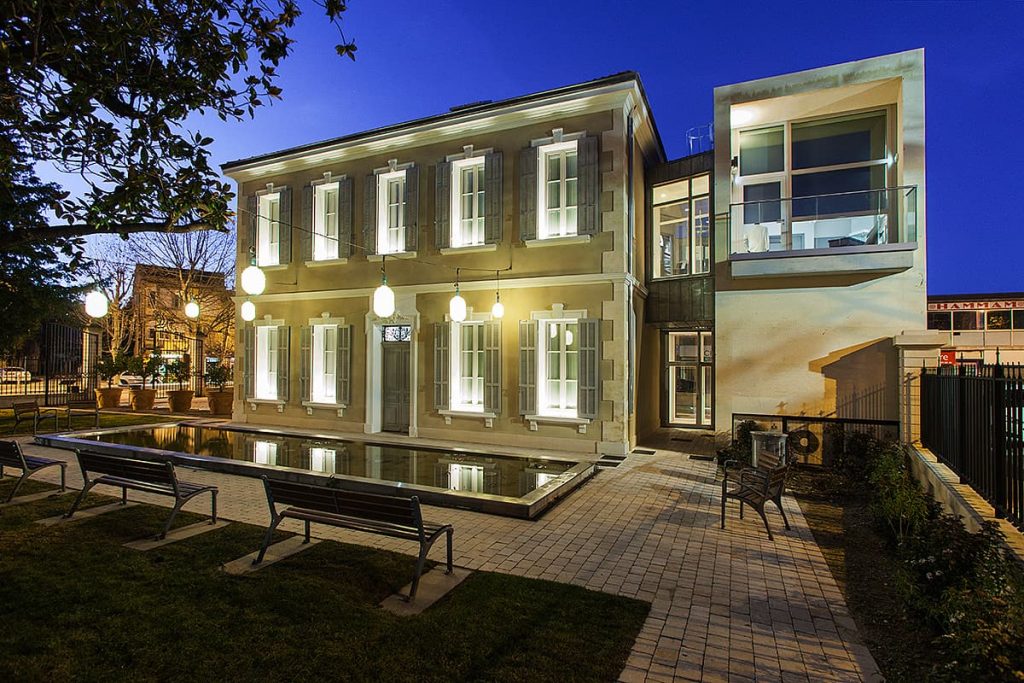 This minimalist extension, with its architecture and volumetry, contrasts with the restoration of the existing building.